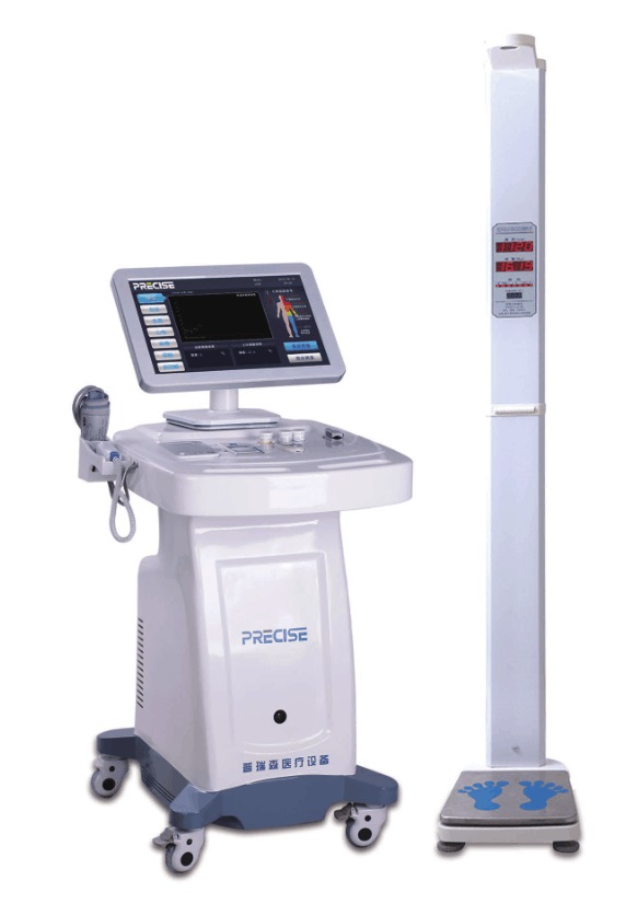 健康一体机的目的在于:提出了一种便携式健康体检一体机,集身高、体重、体温、血压、血脂、心电、腰围等健康指标检测为一体,不需要提供额外的座椅即可检测,避免了携带椅子的麻烦,不用长时间站立进行健康检测,便于搬迁携带外出。