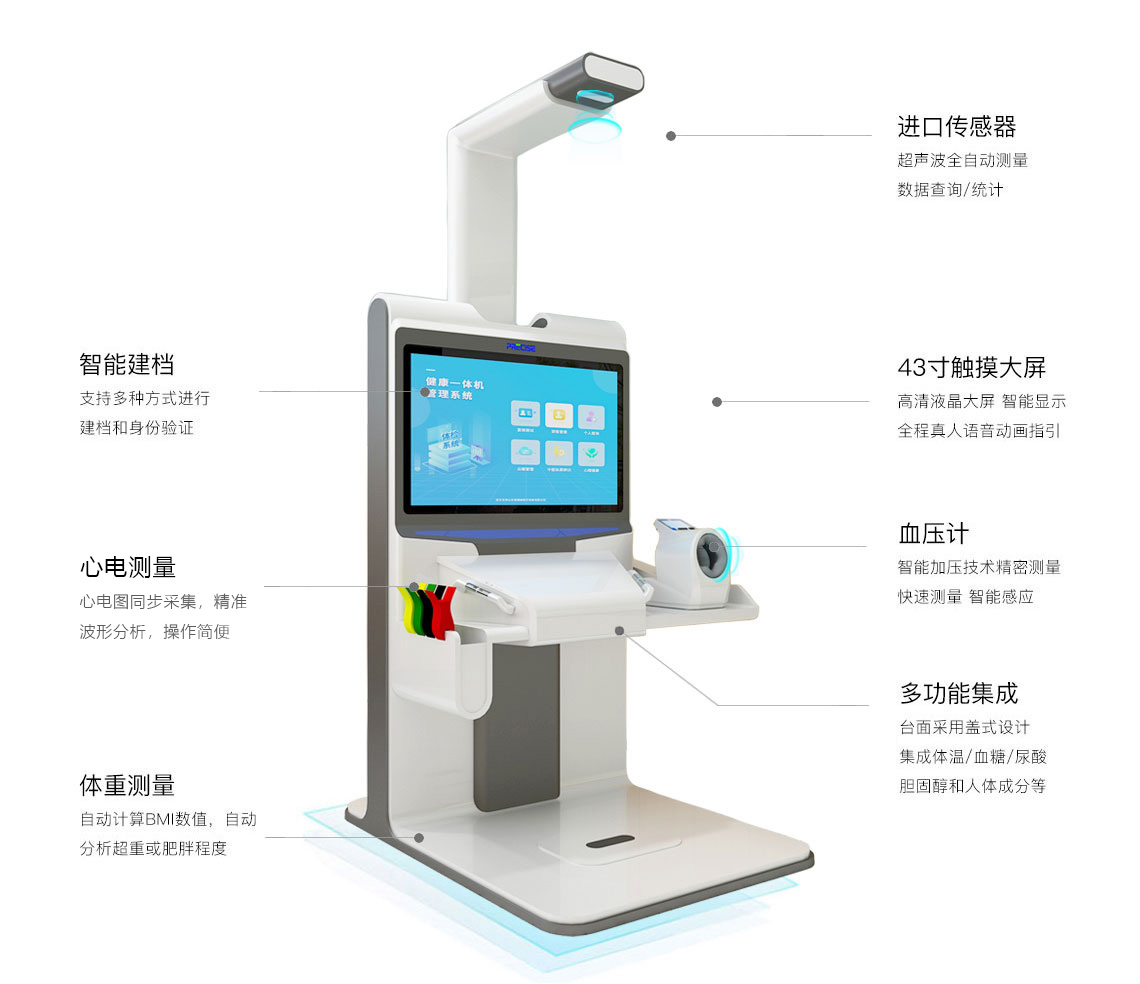 台面盖式设计,涵盖基本公卫,体温/血糖/尿酸/胆固醇/人体脂肪等