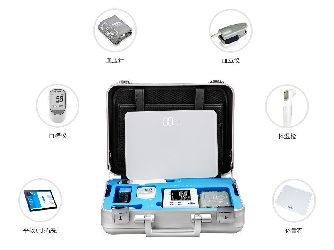 标配功能:体重、体温、血压、脉率、血氧、血糖
